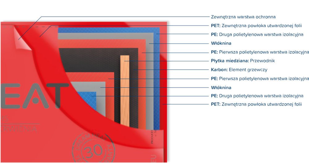 Ekologiczna folia Dream Heat oraz DREAM HEAT zapewnia równomierne ogrzewanie w całym pomieszczeniu. Rozwiązanie można zastosować na suficie, na podłodze, a nawet pod kaflami.