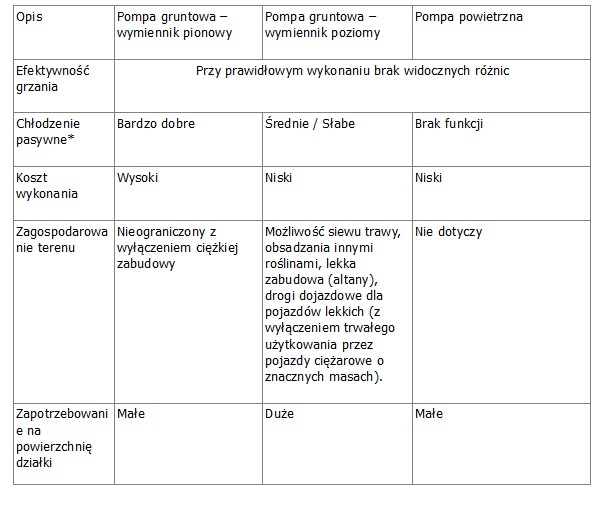 Najważniejsze różnice pomiędzy pompami powietrznymi oraz gruntowymi z wymiennikami poziomymi i pionowymi przedstawia poniższa tabela.