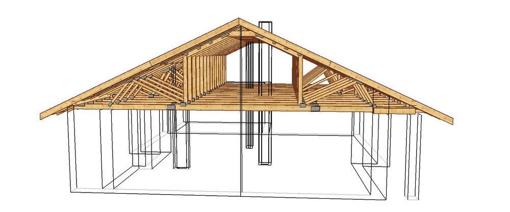 Możemy nadać sufitowi różne kształty. Wiązary z płytkami kolczastymi pozwalają stworzyć strop łukowy lub podniesiony w jednym z pomieszczeń – np. w salonie – podczas gdy w innych może to być zwykły strop płaski. Dzięki temu możliwe jest stworzenie otwartej przestrzeni, np. od strony ogrodu.