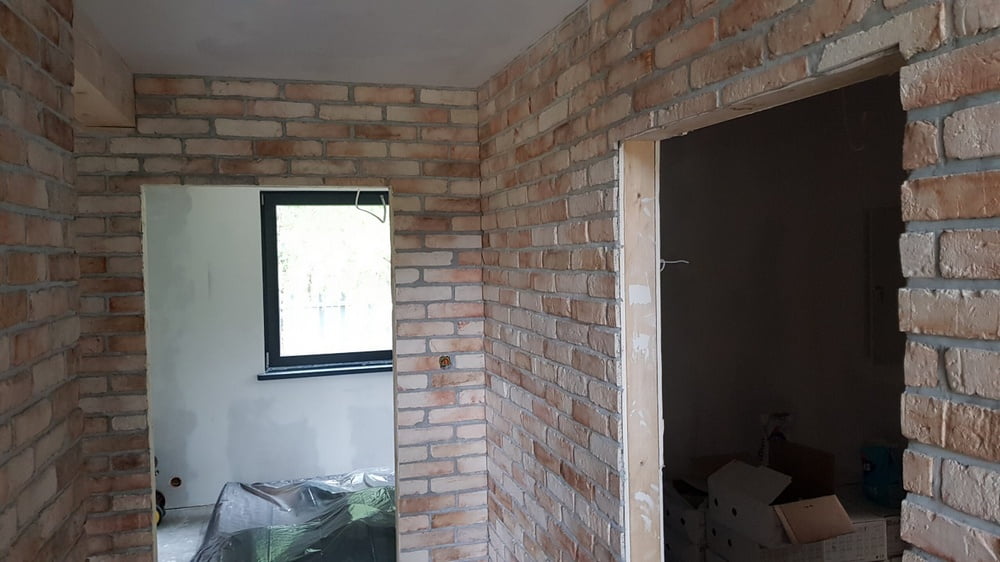 Płytki z cegły rozbiórkowej można nakładać na ścianę za pomocą specjalnego kleju. Ich wielką zaletą jest bardzo niska waga (nawet pięć razy mniej niż regularna cegła), co powoduje, że można je zastosować na każdej ścianie, nawet z płyty gk, na styropianie czy też obudowie kominka. Istnieje możliwość nawet zastosowania ich na zewnątrz, np. na ścianie tarasu.