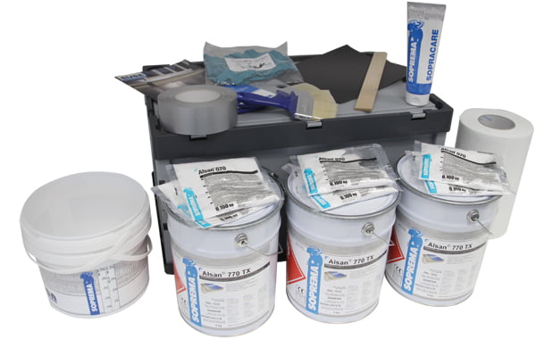 fot. Soprema | ALSAN® 770 TX i odpowiednie akcesoria uszczelniające dostępne w formie ZESTAWU USZCZELNIAJĄCEGO ALSAN® 770 TX PMMA!