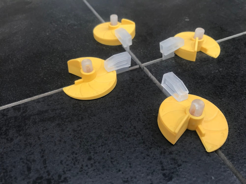 Zasada użycia tego systemu poziomowania płytek jest prosta. Pierwszą płytkę należy ułożyć i wypoziomować przy pomocy poziomicy. Następnie pod jej krawędzie, w odległości 4-8 cm od narożnika, trzeba wprowadzić klipsy. To właśnie na nich bezproblemowo układa się kolejne płytki, dokładając jednocześnie kolejne klipsy pod krawędzie zewnętrzne. Istotne jest to, że w otwory w klipsach przy spotkaniu dwóch płytek wprowadza się kliny, które delikatnie dociskają płytki do podstawek klipsów, dzięki czemu całość jest wypoziomowana dokładnie tak jak pierwsza ułożona płytka. Gdy klej wyschnie, klipsy wyłamuje się – należy je usunąć wykonując to w kierunku fugi. Tak samo postępujemy z klinami.
