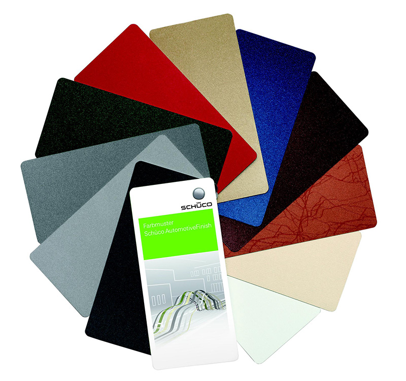 Ciekawą propozycją dla architektów, projektantów oraz osób prywatnych, które chętnie przełamują standardy, są dostępne u niektórych certyfikowanych partnerów Schüco – w tym w firmie Nowy Dom Okna – metaliczne powłoki Schüco AutomotiveFinish. To technologia zaczerpnięta z przemysłu motoryzacyjnego, łącząca w sobie estetyczne i odpornościowe walory lakieru, który można… naklejać na folię.