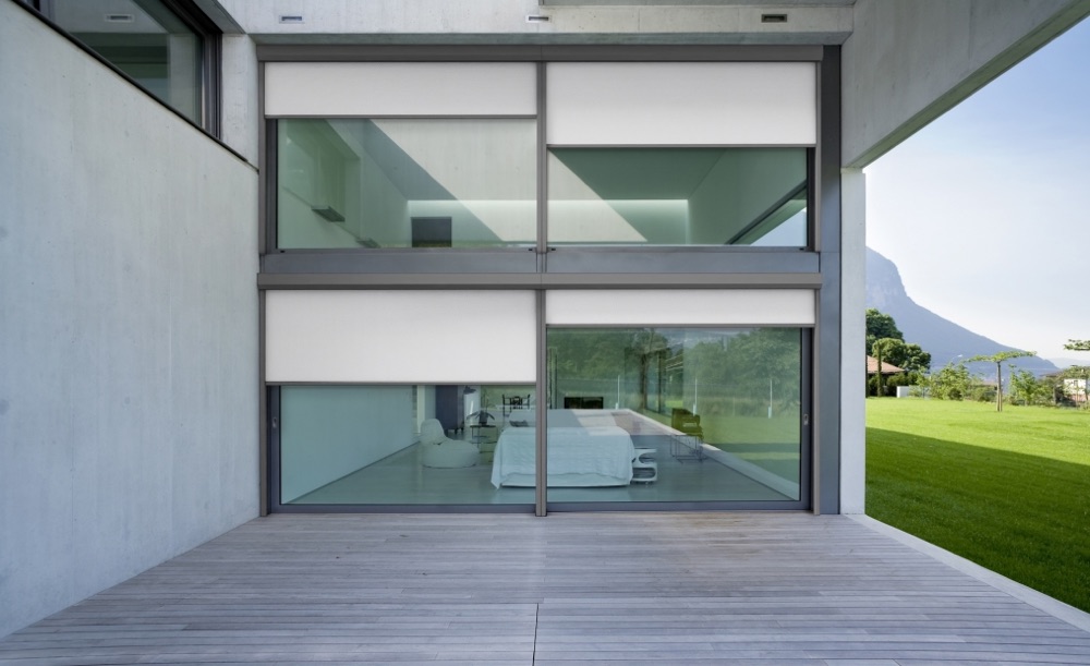 Podwójne prowadnice z systemem kompensacji naprężenia umieszczonego w nich materiału zapewniają, że tkanina jest odpowiednio napięta i stabilnie osadzona, co gwarantuje odporność na wiatr. Belka obciążająca, ukryta w kasecie, zapewnia optymalny dostęp światła do wnętrza, gdy osłona jest otwarta, a minimalna widoczna szerokość profila prowadnicy (zaledwie 30 x 50 mm) dodatkowo podkreśla subtelną obecność tego systemu w strukturze budynku.