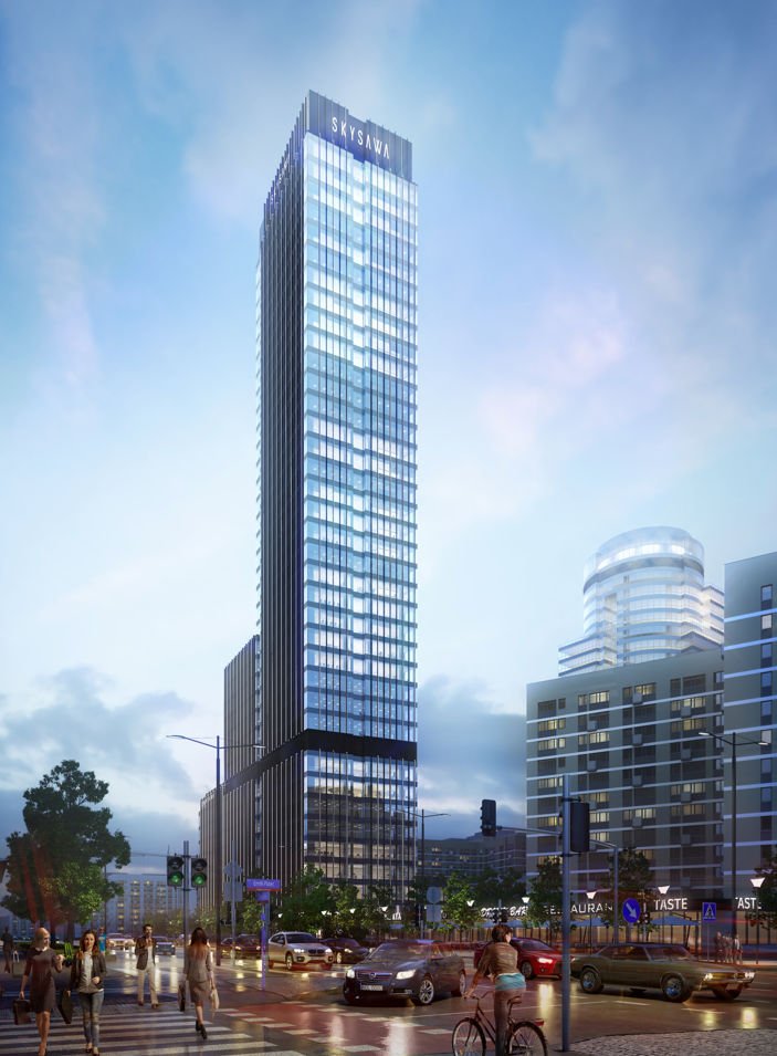 SKYSAWA to wieżowiec zlokalizowany bezpośrednio przy Rondzie ONZ, przy ul. Świętokrzyskiej 36, w samym centrum Centralnego Obszaru Biznesu w Warszawie. Flagowy projekt PHN jest jednym z pierwszych biurowców bezpośrednio połączonych ze stacją linii metra. Ścisła zabudowa tej części miasta, konieczność integracji z otoczeniem i stosunkowo niewielka działka, na której powstała SKYSAWA, stały się inspiracją do stworzenia oryginalnego i niepowtarzalnego kształtu budynku, który przez miłośników architektury porównywany jest do nowojorskich ołówkowców. Wysokość SKYSAWA idealnie współgra z wysokimi i niższymi budynkami, znajdującymi się w okolicy, wzbogacając skyline centrum Warszawy. Kaskadowy kształt wieży zapewnia odpowiednie nasłonecznienie, a smukła sylwetka budynku pozwala na aranżację przestrzeni umożliwiającej dostęp do widoków za oknem wszystkim osobom korzystającym z powierzchni.