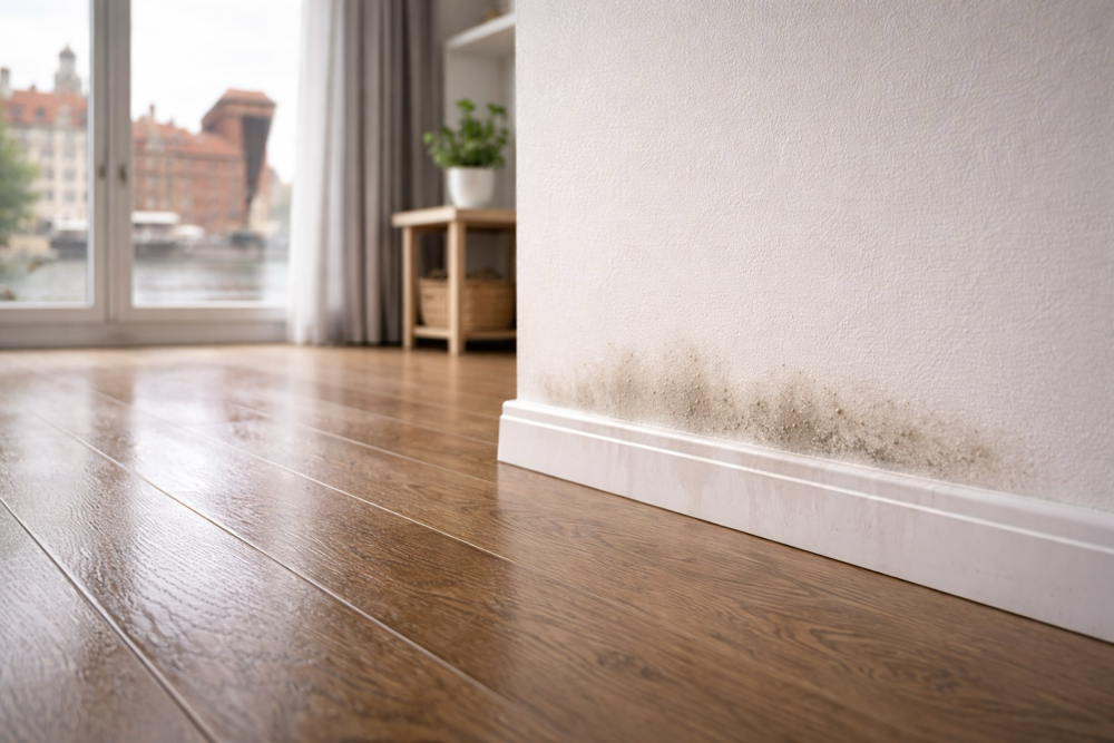 To jeden z kluczowych problemów po zalaniu. Brak widocznej wody nie oznacza, że mieszkanie jest suche.
