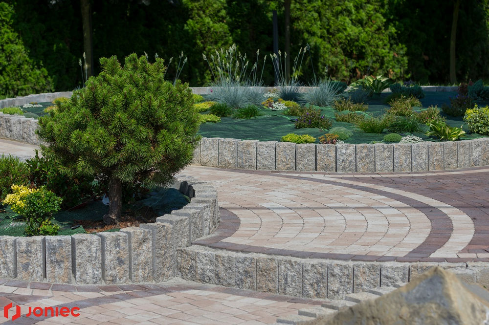 Szeroki zakres możliwości aranżacyjnych powierzchni ogrodu dają palisady firmy JONIEC®. Stanowią one element dekoracyjny, który daje możliwość zaakcentowania różnego ukształtowania powierzchni. Różne długości palisad pozwalają na ich dopasowanie do potrzeb i wymagań terenu. Mogą one zostać zastosowane jako spójne z całością aranżacji obrzeże trawnika, chodnika czy rabat kwiatowych, ale również mogą zostać wykorzystane do umocnień skarp czy budowy tarasów o różnych długościach. Łupane elementy występujące na palisadach fantastycznie komponują się z roślinnością i architekturą posesji.