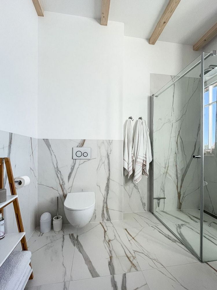 Główna łazienka: przestrzeń, marmur i jasne kolory