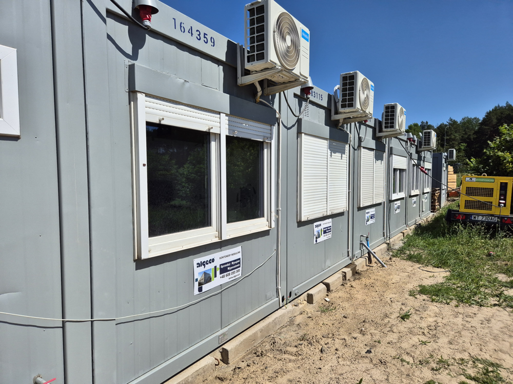 - Kontenery budowlane i socjalne – dostosowane do potrzeb ekip pracujących w terenie, wyposażone w zaplecze sanitarne.