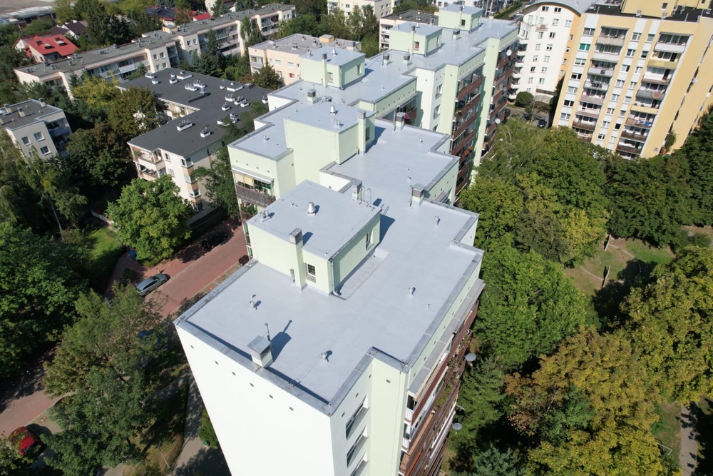 Odnowa pokryć dachowych przy użyciu systemu poliuretanowego DROOF 250 zapewnia trwałą szczelność warstwy hydroizolacyjnej oraz pełną odporność na szkodliwe czynniki atmosferyczne. Ponadto, płynne membrany hydroizolacyjne DROOF 250 wyróżniają się wysoką zdolnością odbijania promieniowania słonecznego, co w okresie letnim skutkuje obniżeniem temperatury na poddaszu oraz zmniejszeniem zużycia energii przez klimatyzację.
